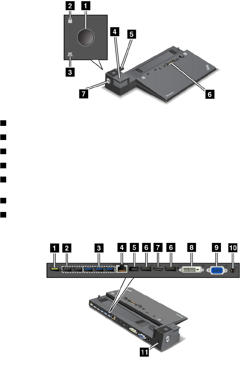6Dockingstationconnector:Usedtoattachyourcomputer.