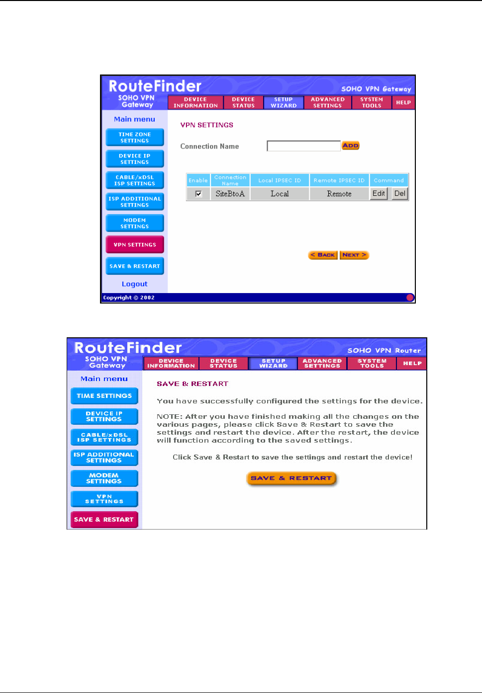 Example 2 – LAN-to-LAN Fixed IP Addresses Using RF760/660/600VPN and RF560/550VPN