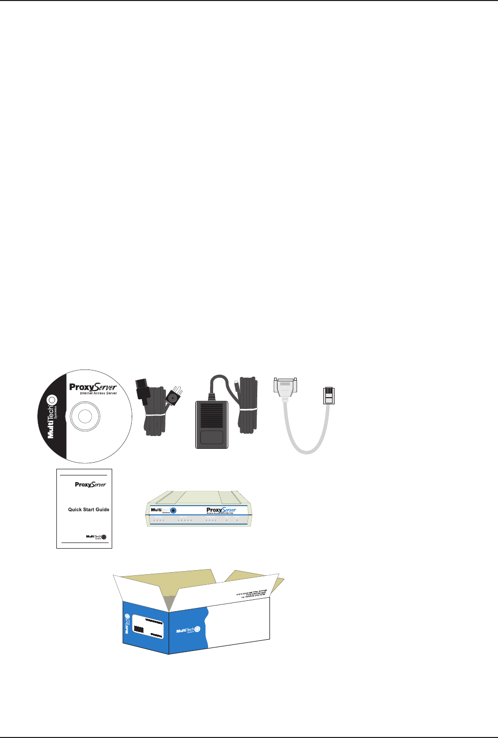 cable, your (printed) Quick Start Guide, and one CD (which contains the ProxyServer Software, the