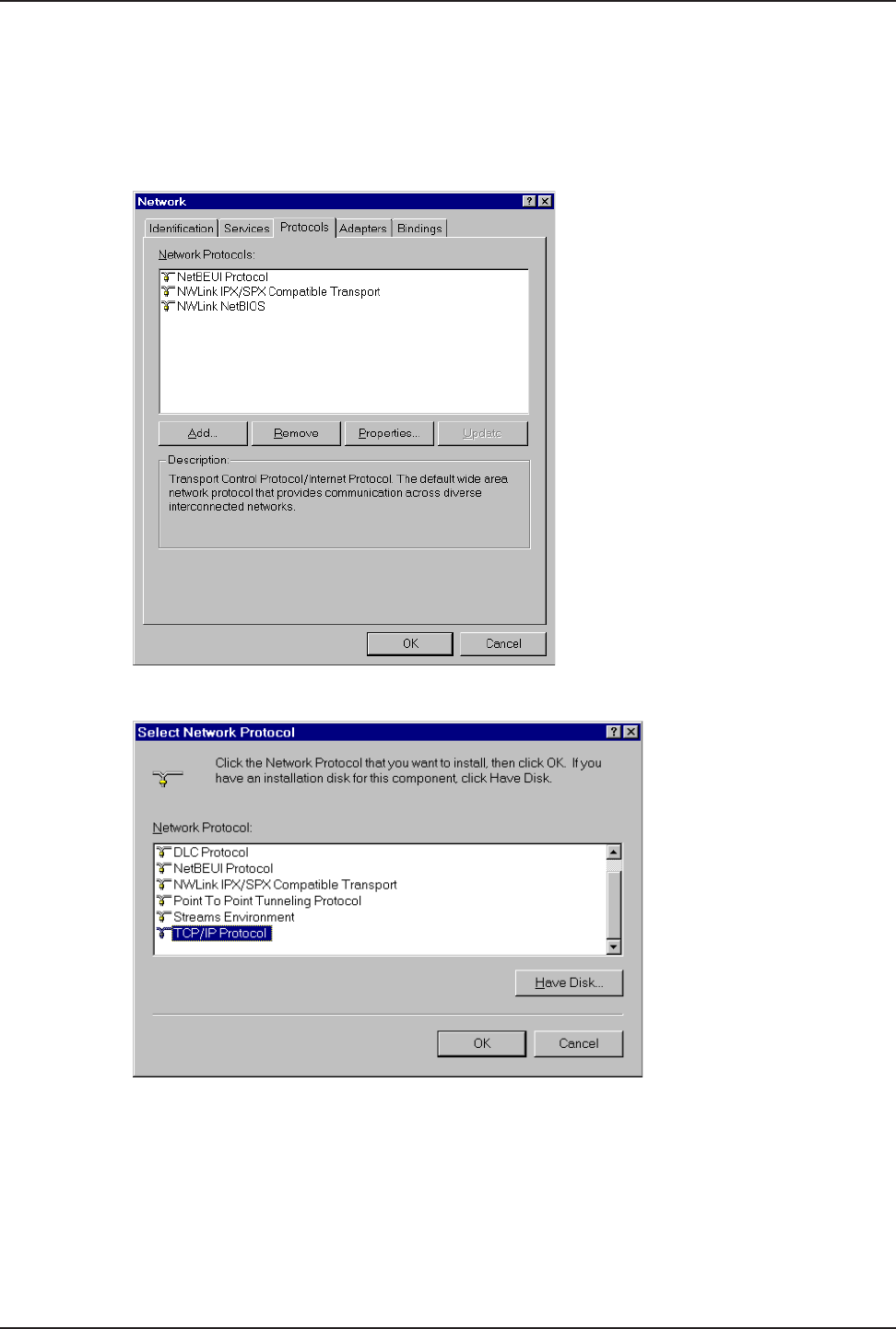 Installing TCP/IP (WinNT)
