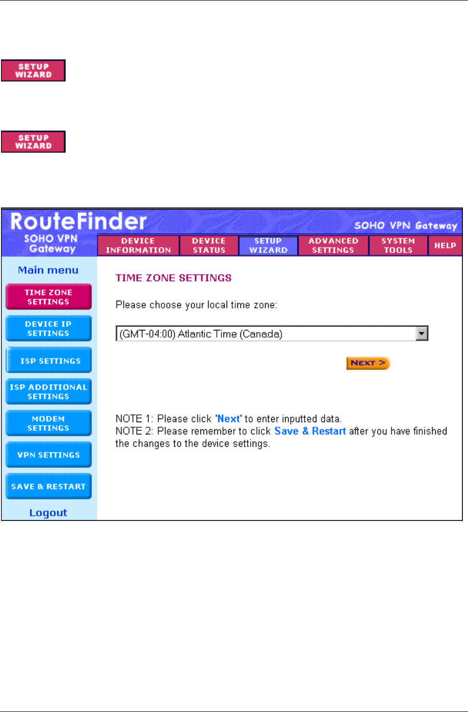 When the Setup Wizard screen displays, the Setup Wizard button will turn blue to