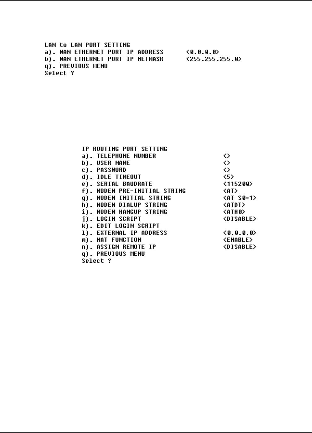 If you will use the async port for IP Routing, enter the following information as