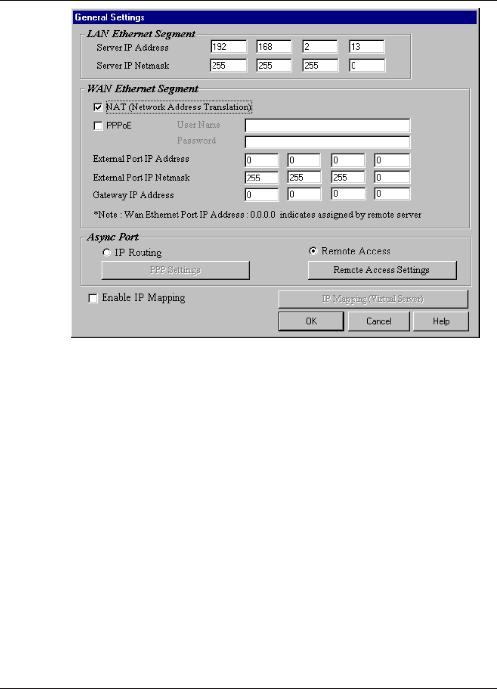the LAN Ethernet segment and the WAN Ethernet segment. The External Port IP