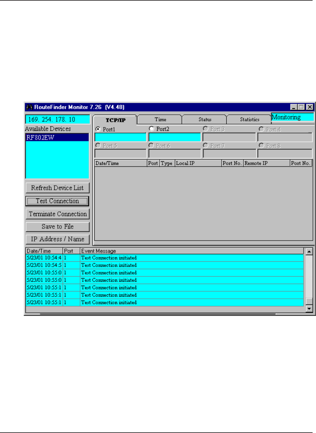 Click Refresh Device List from the main RouteFinder Monitor dialog box to display a list