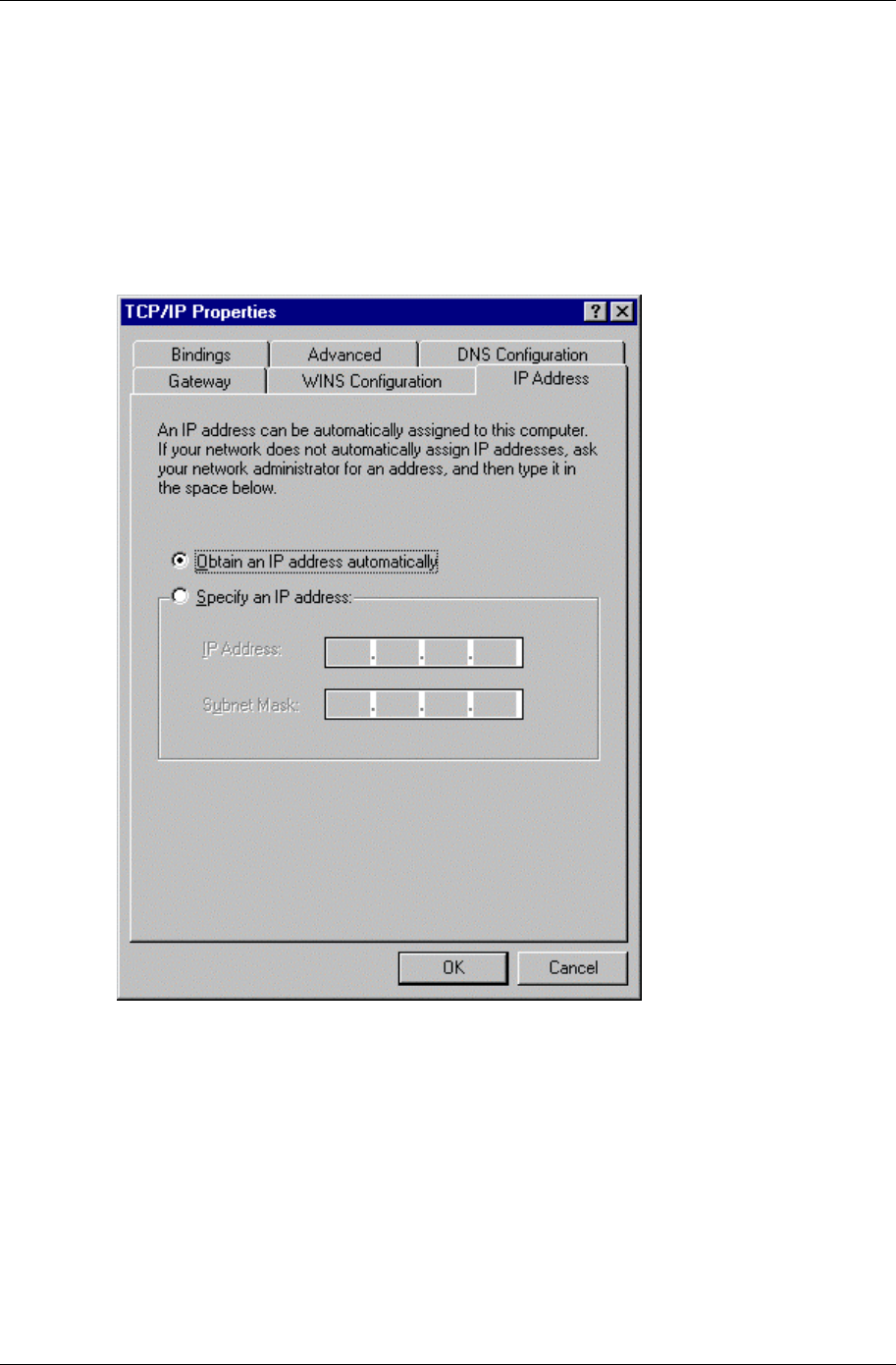 6. The TCP/IP Properties window displays. Click the IP Address tab to set your workstation’s IP